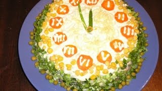 https://www.youtube.com/watch?v=0KnjGd0AmX8Салат Новогодние часы. Вкусный новогодний рецепт. Рецепты новогодних блюд 2016. Совсем скоро к нам придет … Новый год! И нам захочется побаловать своих и близких чем-нибудь вкусненьким. Так давайте делиться друг с другом новогодними рецептами. А я сегодня предлагаю Вам вкусный новогодний рецепт — салат Новогодние часы. Если Вы любите слоеные салаты, то этот рецепт …